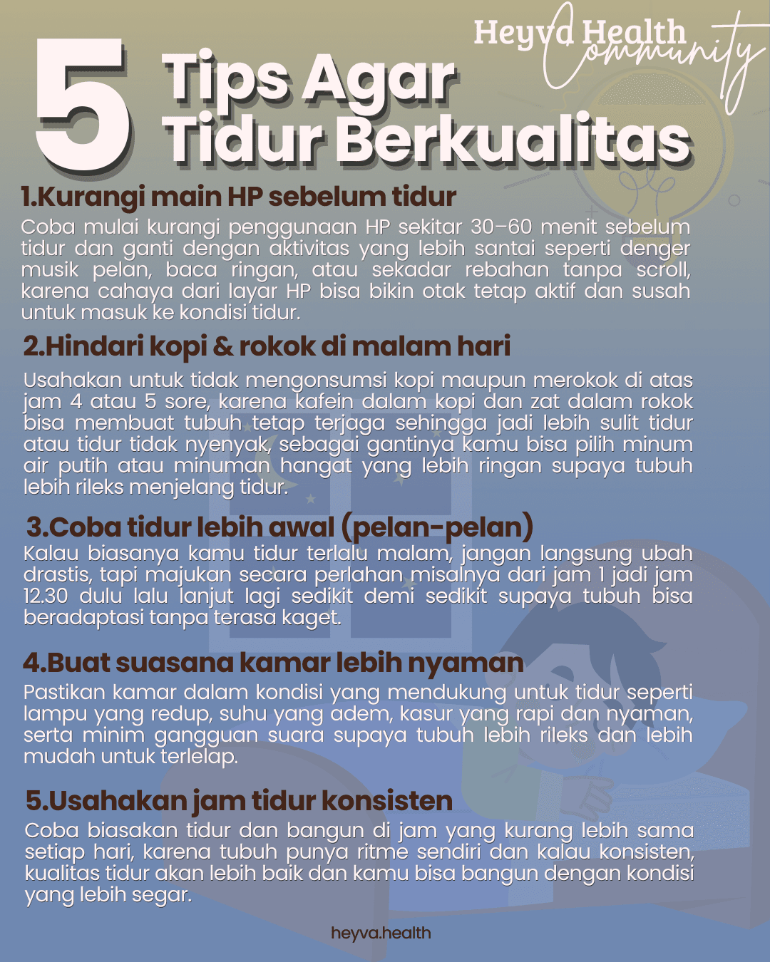 Berikut 5 Tips yang bisa kamu lakukan untuk membangun tidur yang lebih berkualitas.