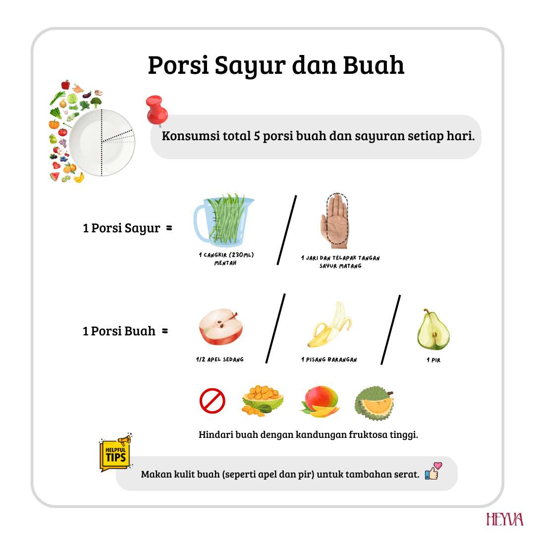 Dengan memperbanyak konsumsi buah dan sayur, tubuh Anda akan mendapatkan serat yang dibutuhkan untuk mendukung pencernaan yang sehat, menurunkan risiko penyakit jantung, dan menjaga berat badan ideal. Mulai sekarang, pastikan Anda menikmati 5 porsi buah dan sayur setiap hari!